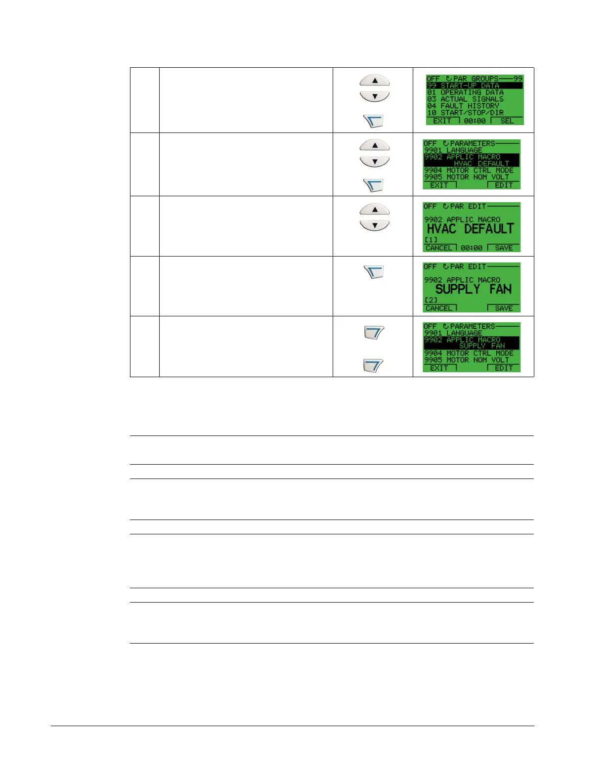Note: To view the default parameter value, press the UP/DOWN buttons