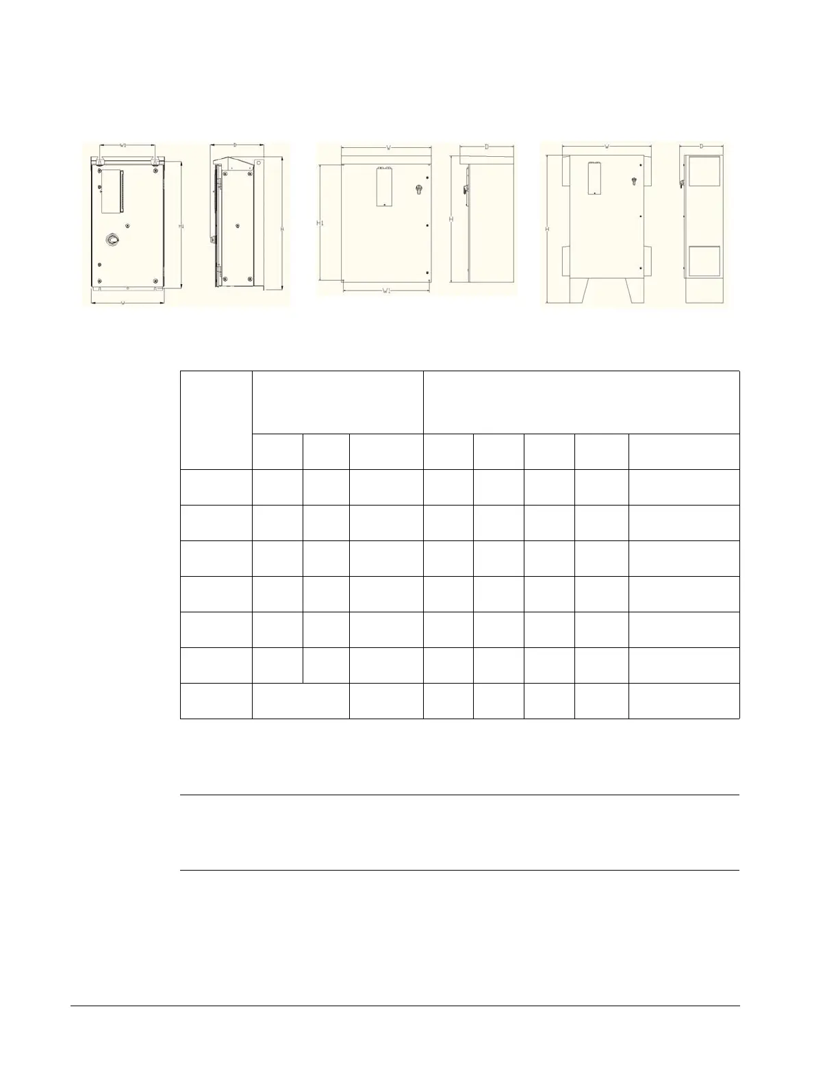 Dimensions: ACH550-BxR UL Type 3R/NEMA 3R, R1 through R8 Frame Size