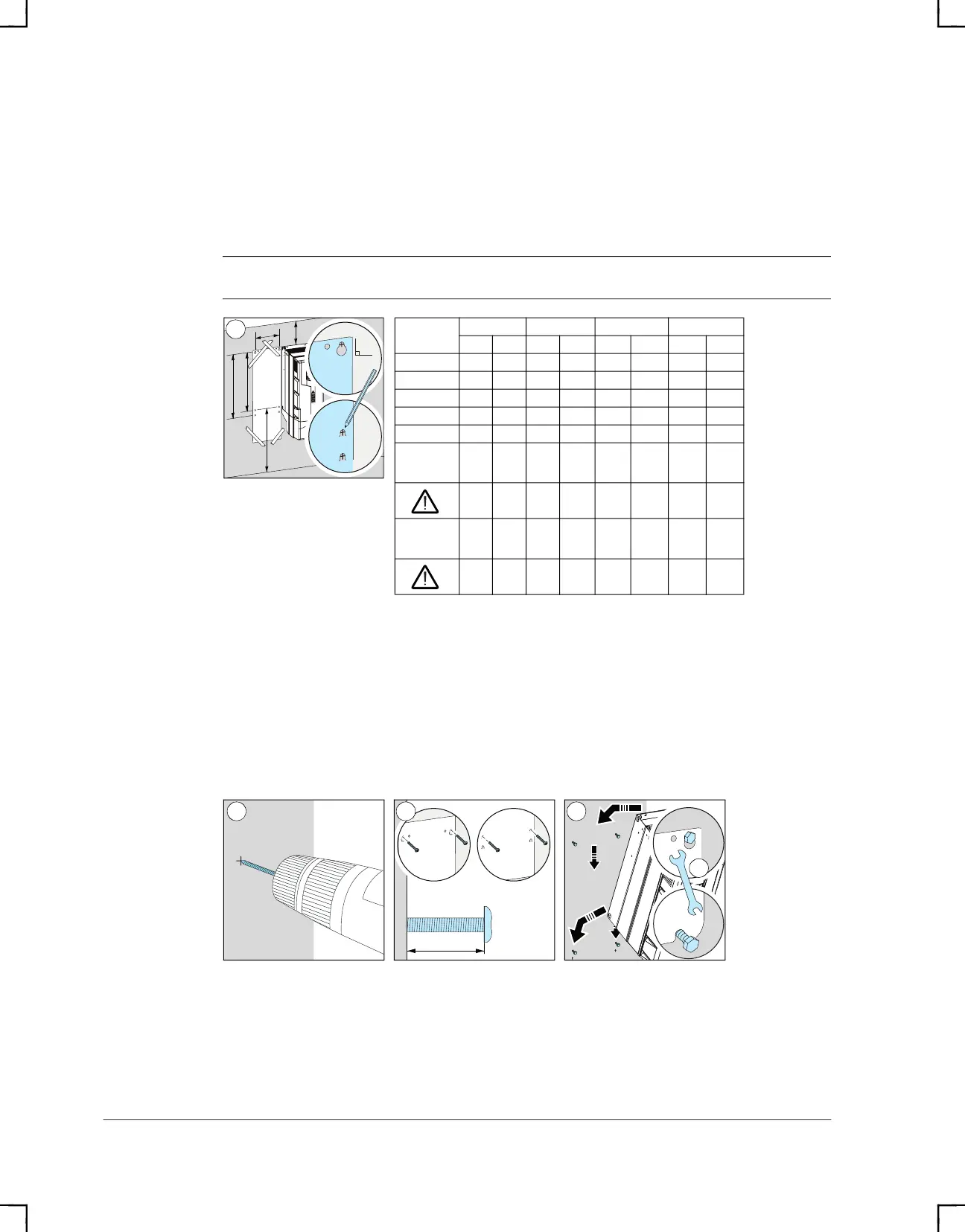 3. Insert anchors or plugs into the holes and start the bolts into the anchors or plugs.