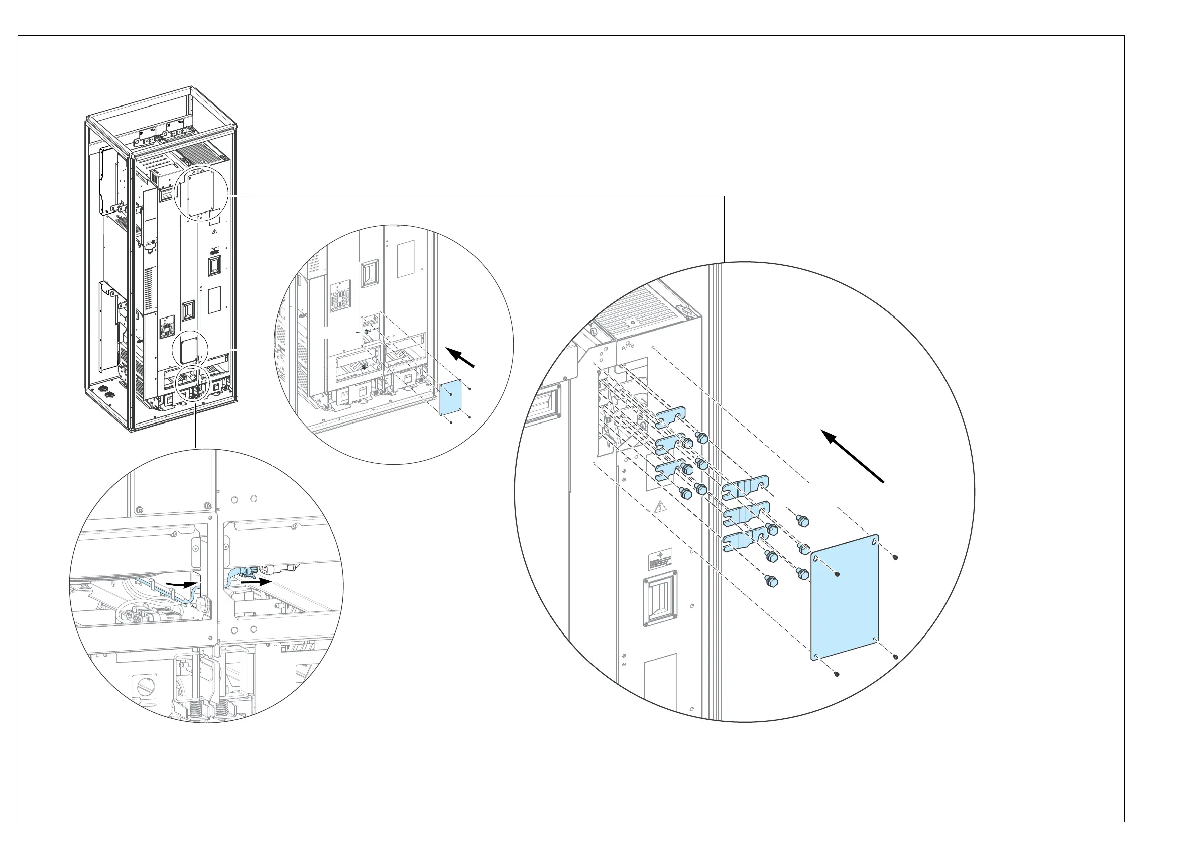 14 Step-by-step drawings for an installation example of standard drive configuration in Rittal VX25 800 mm wide cabinet