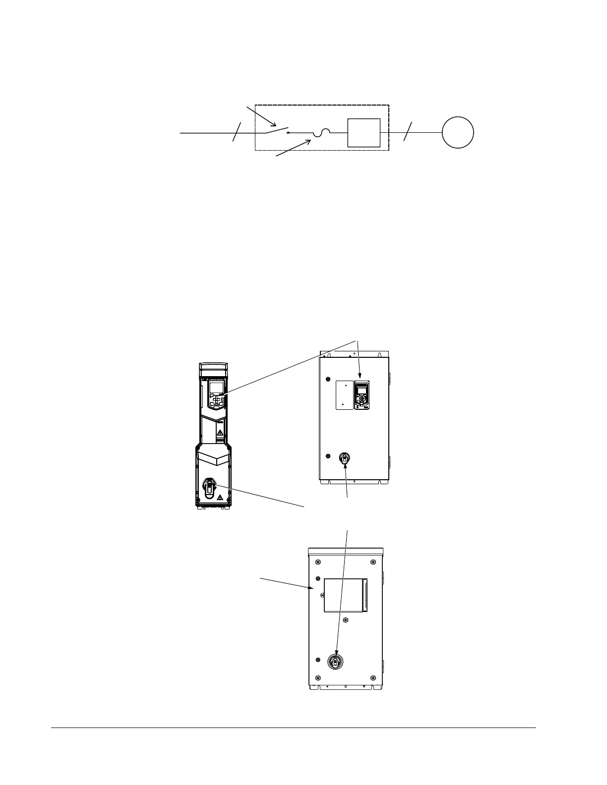 The following shows the front view of the ACH580 Drive with Input Disconnect