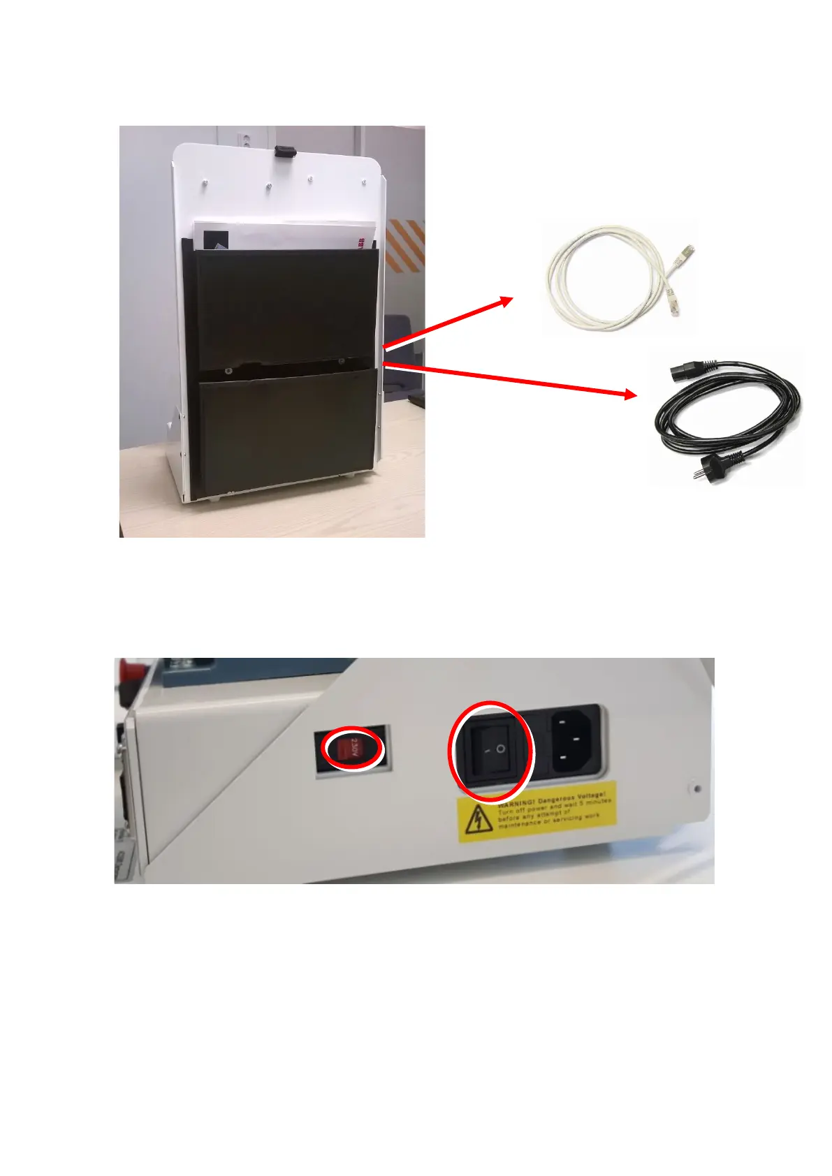3. Take out the mains cord and Ethernet cable from the pocket at the back of the demo.