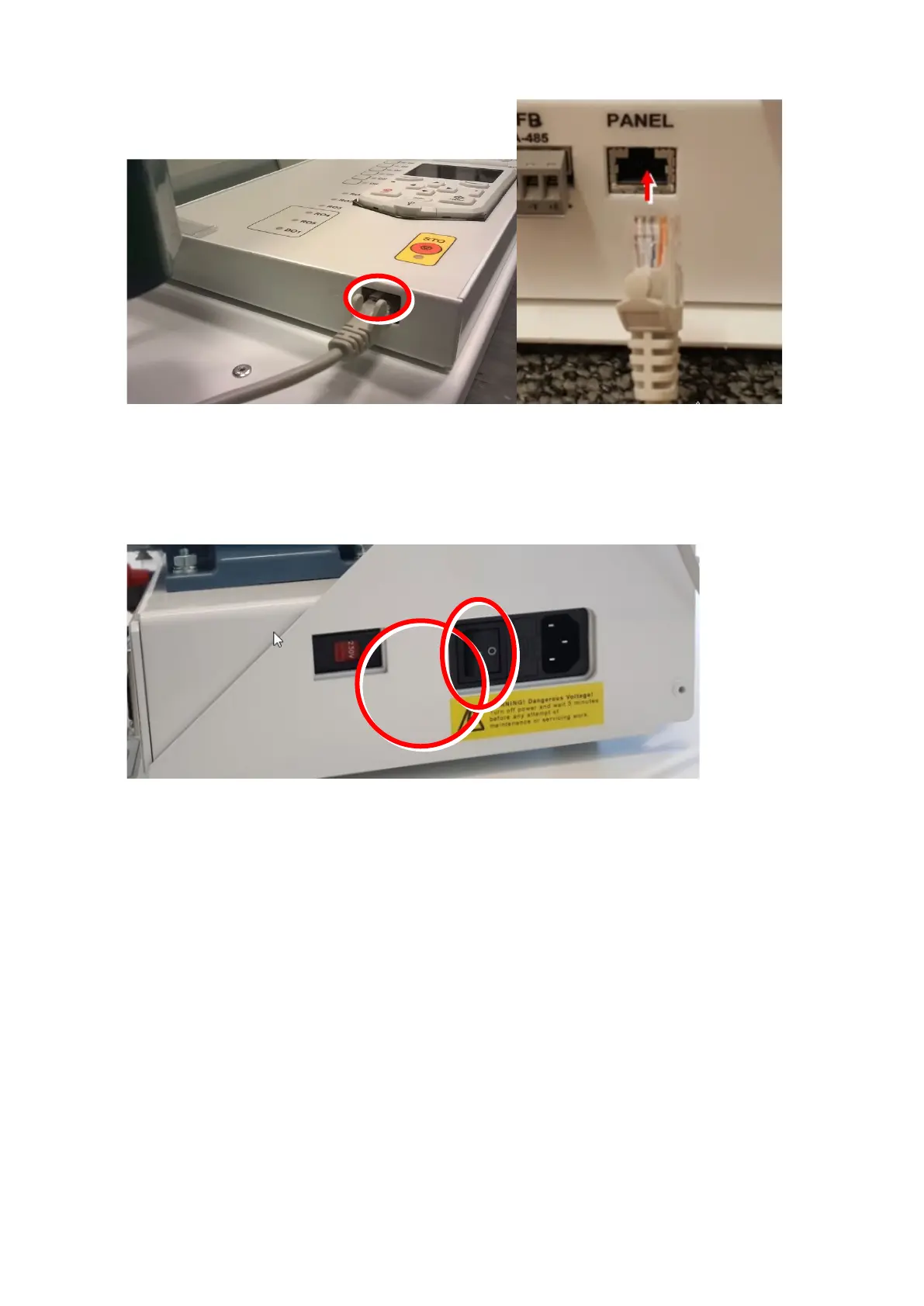 I/O-panel connection A is located next to mains cord connection and the I/O-panel connection B is