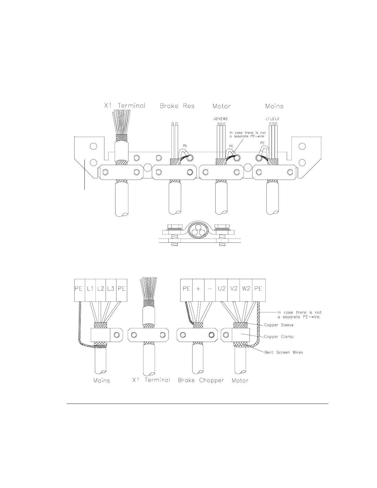 Figure A-3 The principle of cable connections for frame sizes R0 and R1
