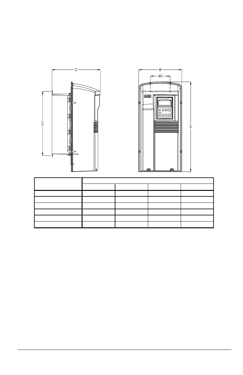 fan is added to improve cooling. This structure increases the dimensions compared to the IP 21