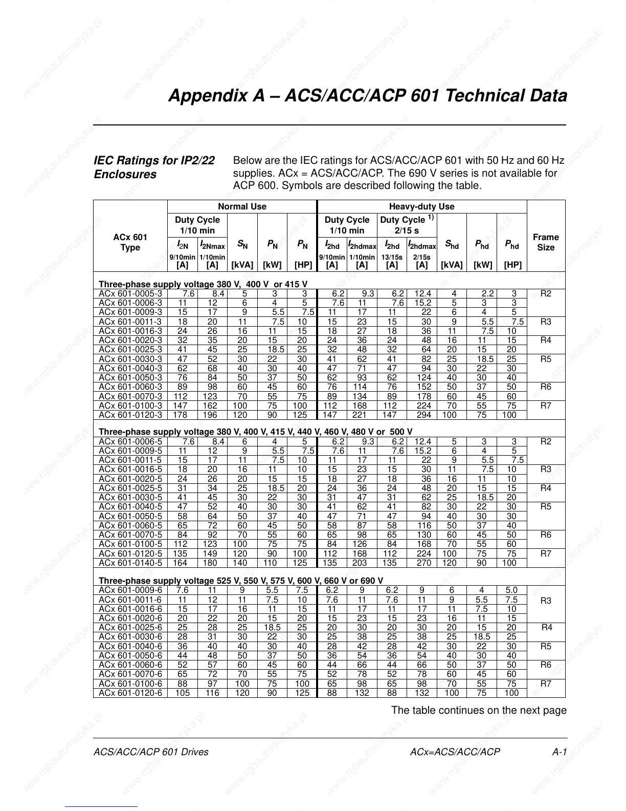 ACS/ACC/ACP 601 Drives ACx=ACS/ACC/ACP A-1