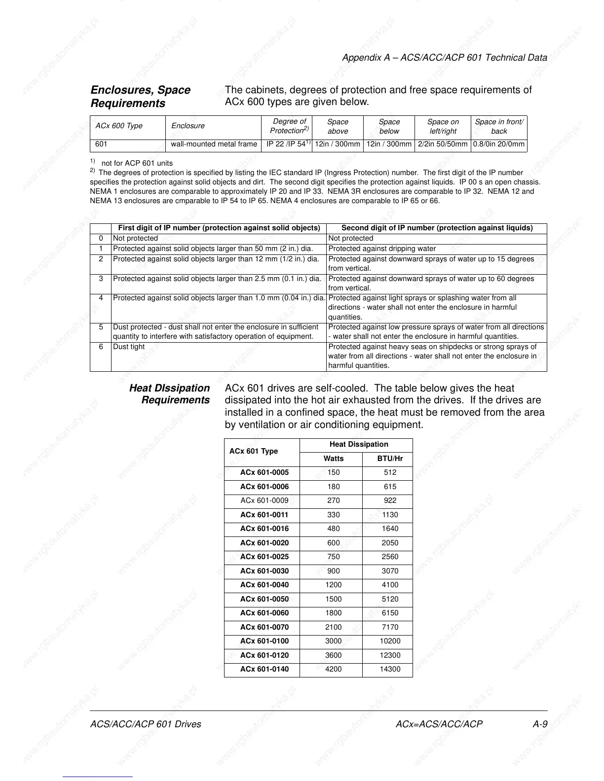 ACS/ACC/ACP 601 Drives ACx=ACS/ACC/ACP A-9
