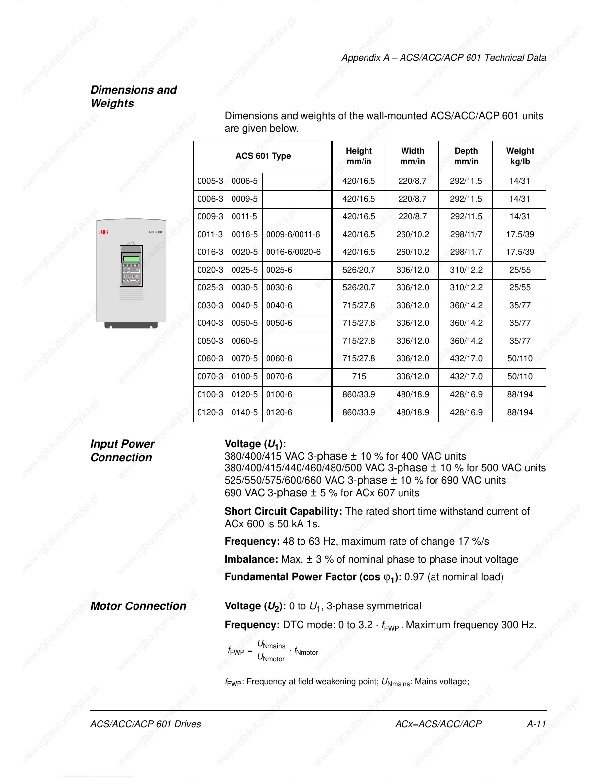 ACS/ACC/ACP 601 Drives ACx=ACS/ACC/ACP A-11
