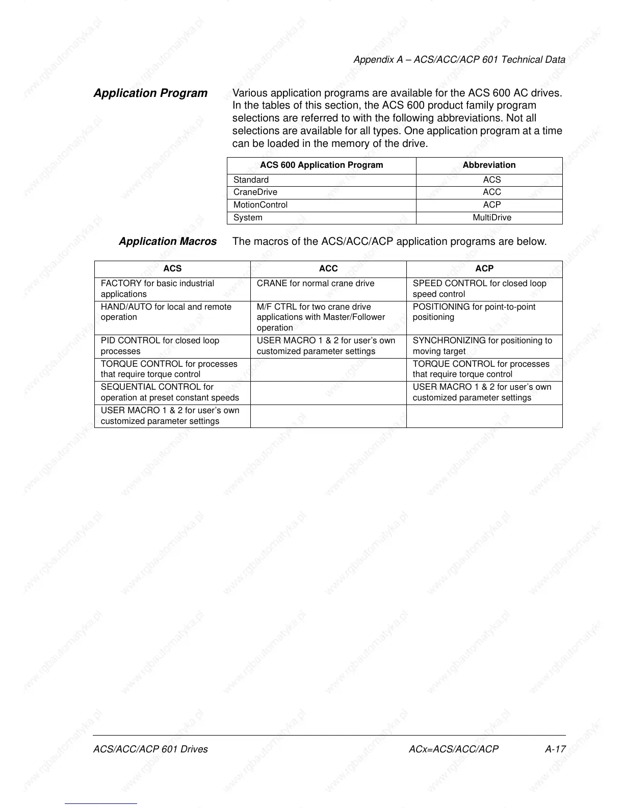 ACS/ACC/ACP 601 Drives ACx=ACS/ACC/ACP A-17