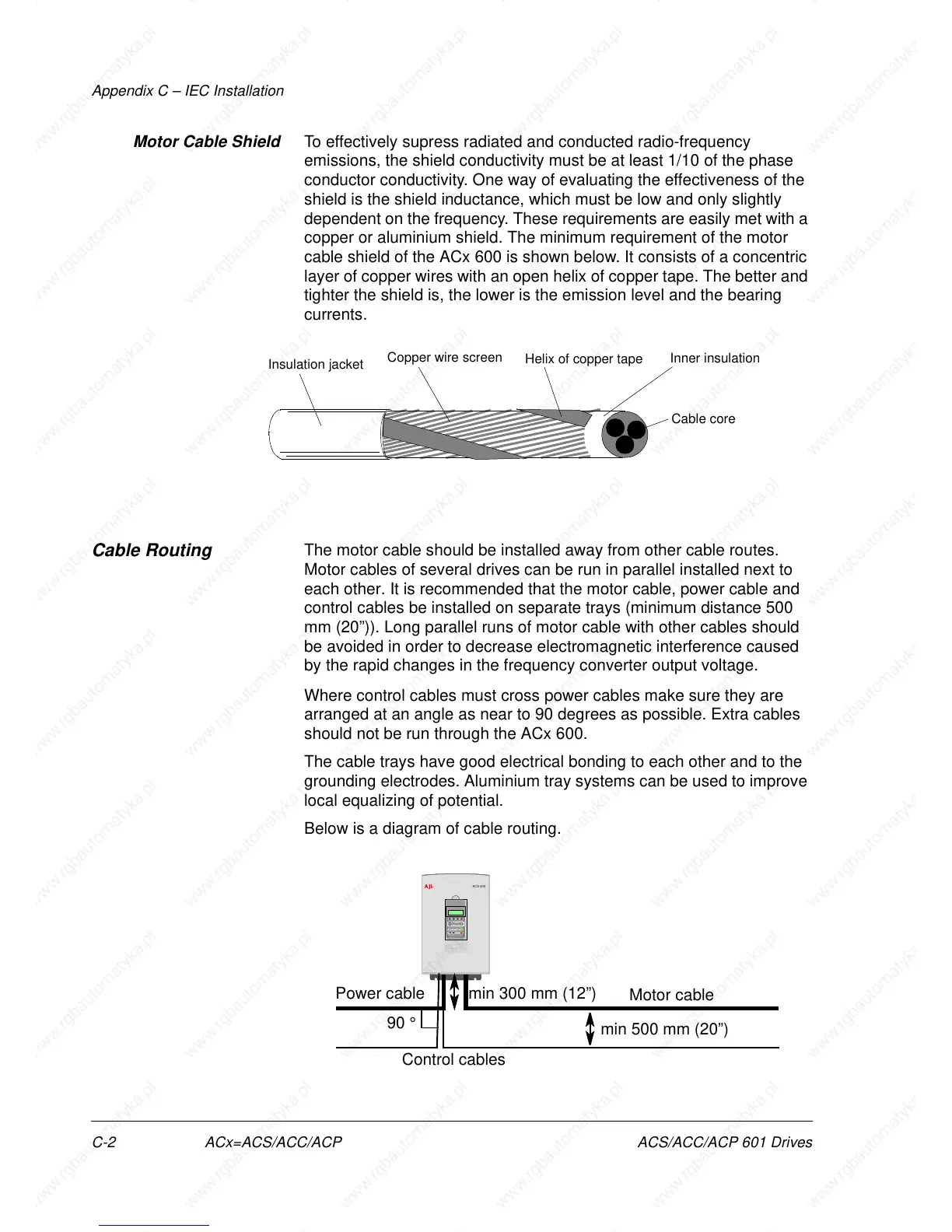 mm (20”)). Long parallel runs of motor cable with other cables should