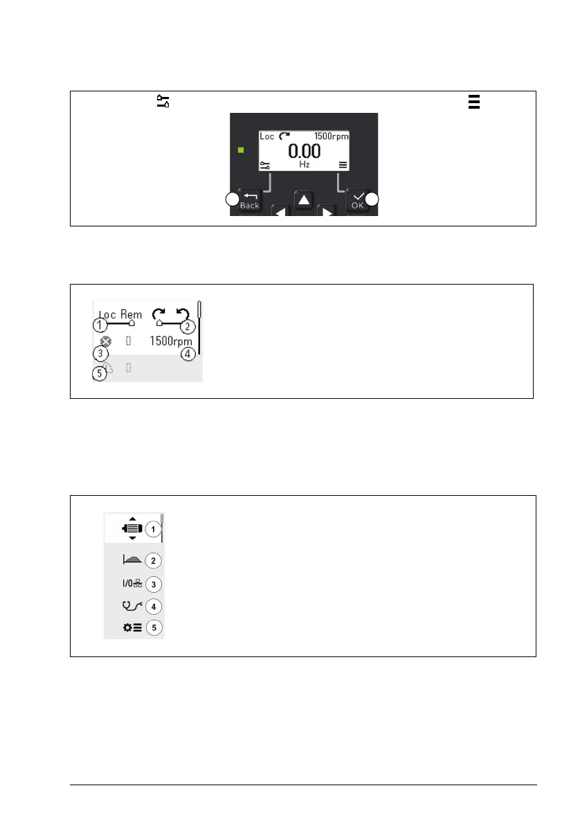Note: You can define which Main menu items are visible (see parameter 49.30).