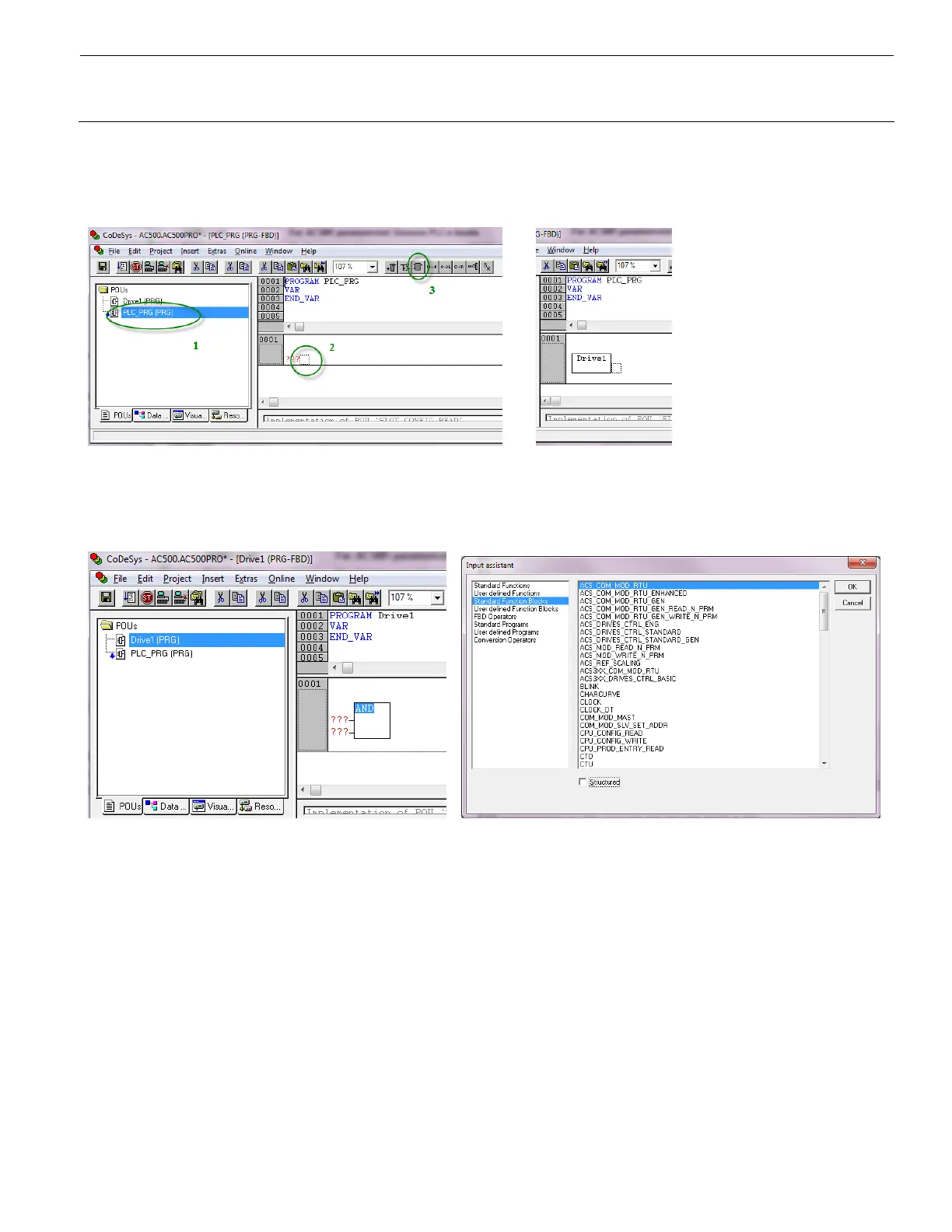 selected and choose “ACS_COM_MOD_RTU” from “Standard Function Blocks”, then click “OK” (Tip: untick the