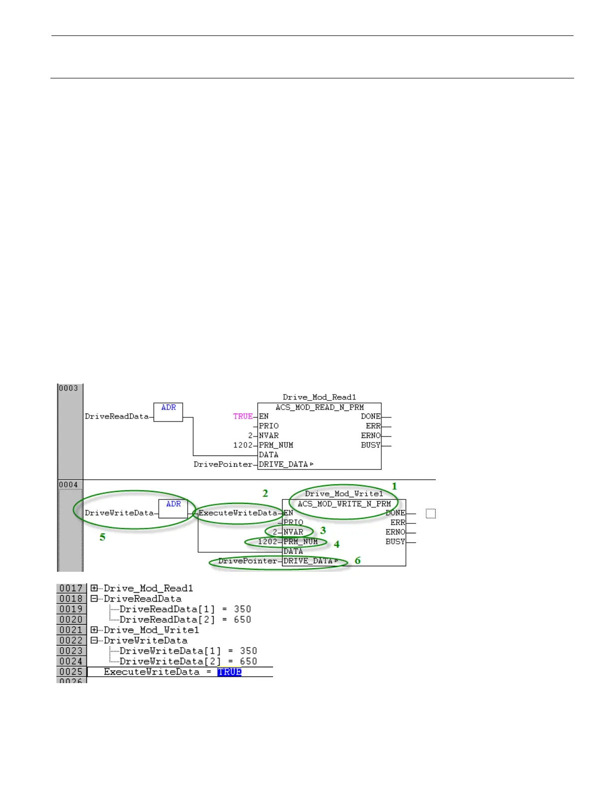 DRIVE_DATA=Thesamevariablethatis connectedto“ACS_COM_MOD_RTU”→“DRIVE_DATA”(6).