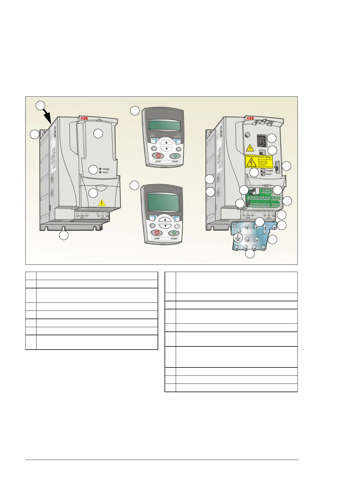 15 Input power connection (U1, V1, W1) and