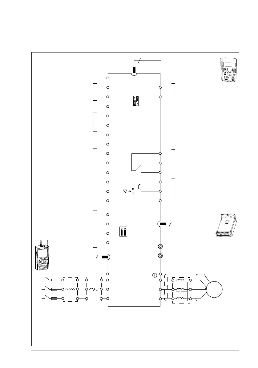 Note: For 1-phase power supply, connect power to U1/L and V1/N terminals.