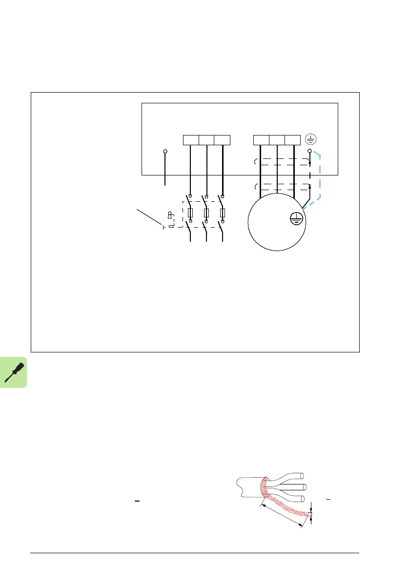 • If there is a symmetrically constructed grounding conductor in the motor cable in