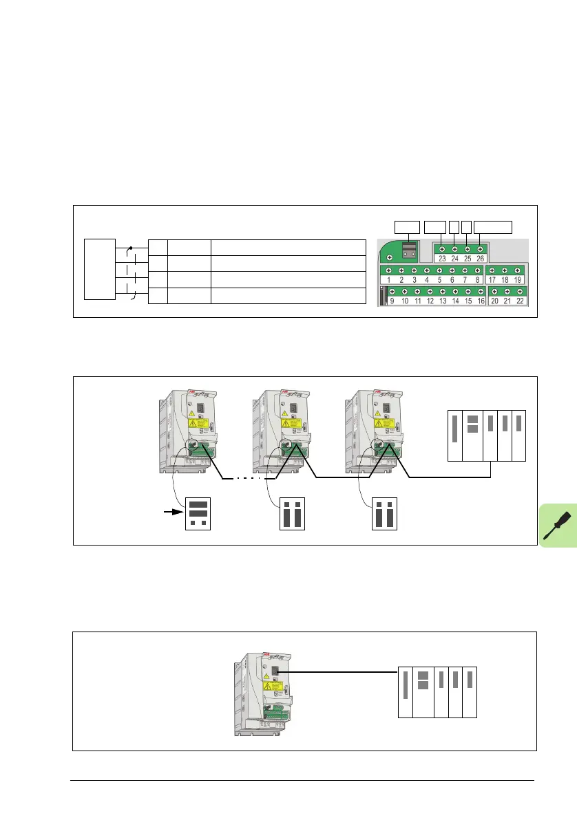 Embedded fieldbus can be connected to the drive with EIA-485 or RS-232.