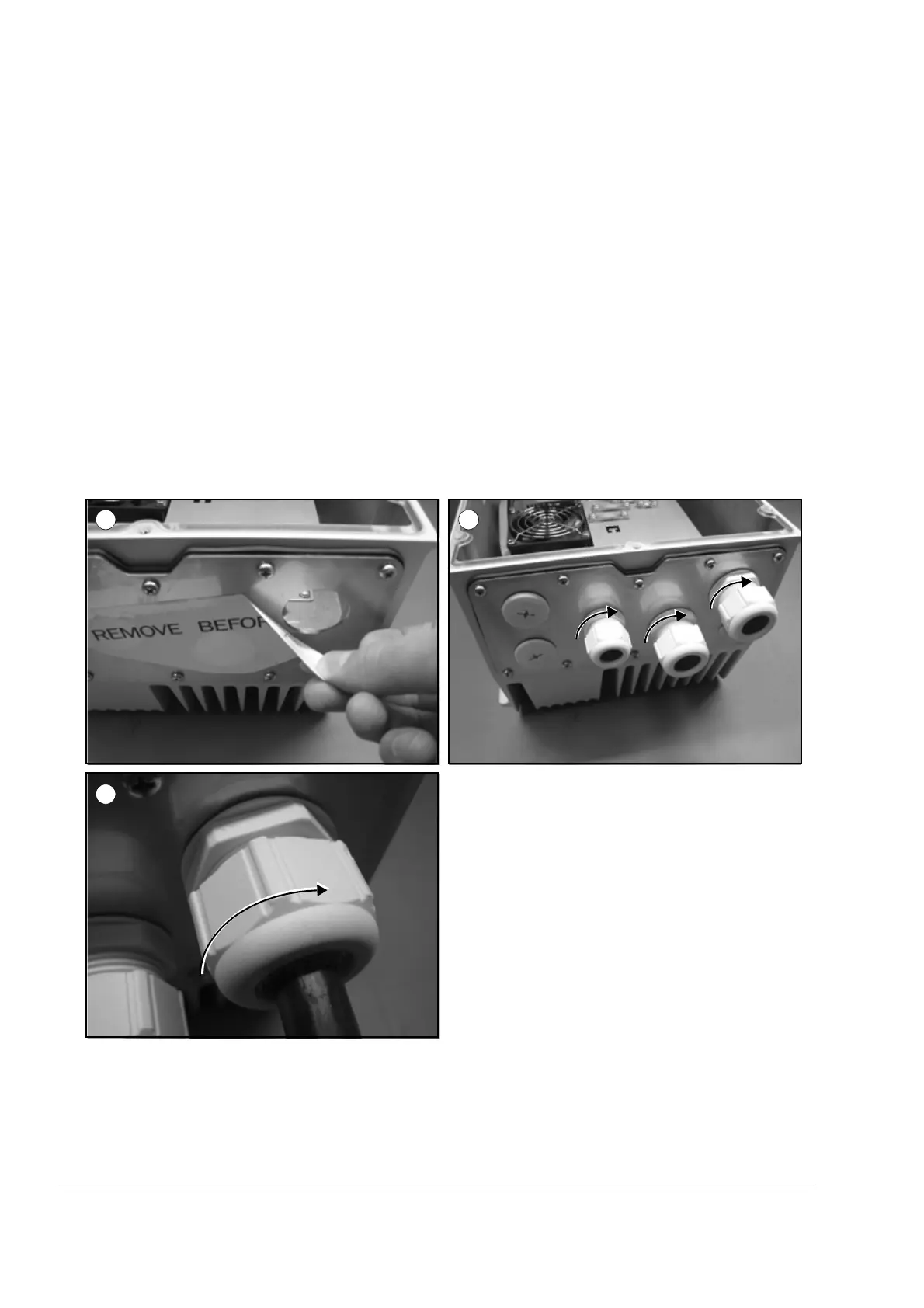 3. Lead the cable through the gland and tighten until the gasket of the lead-through