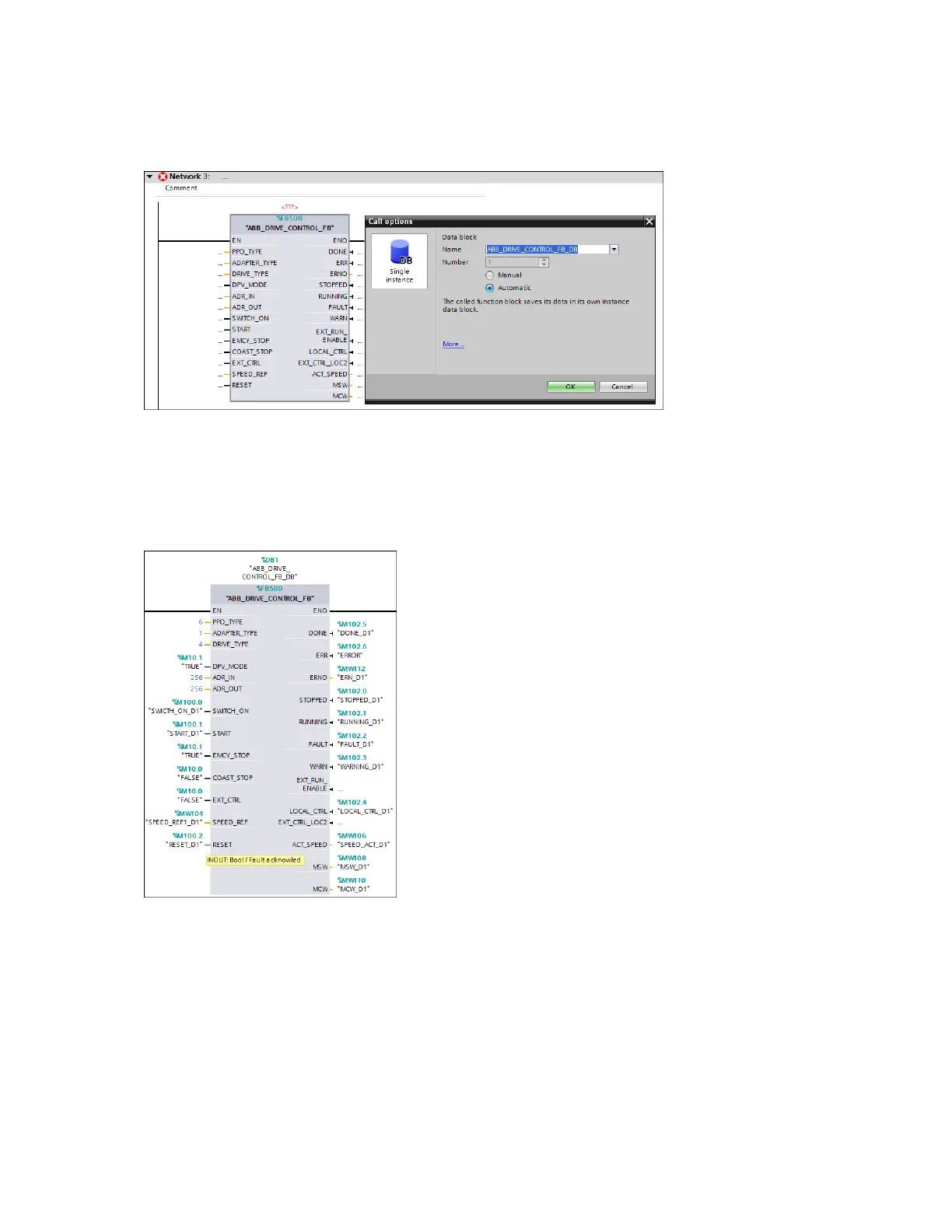 4. Create a unique Data block for the control of the drive by enabling Manual option and by