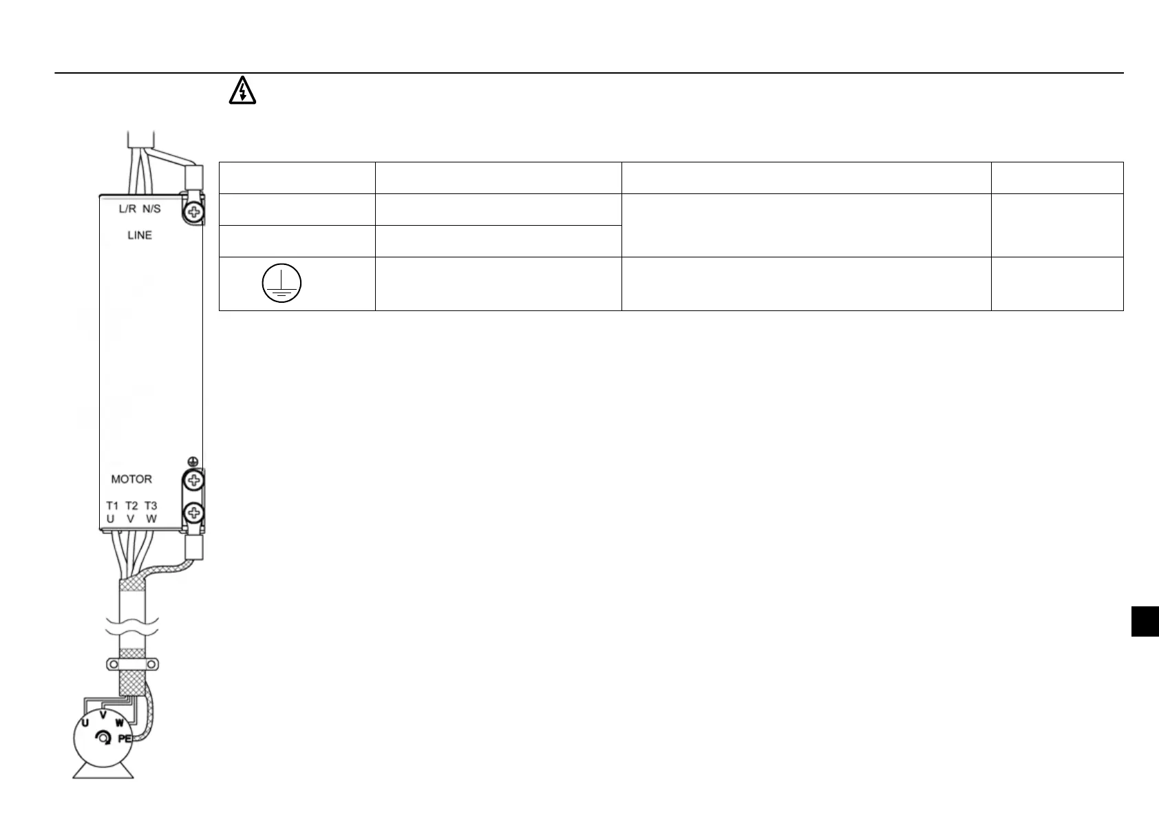 주 : 입력 전원이 맞는지 확인하십시오 ! 입력 전압이 115VAC 인 ACS55 유닛에 230 VAC 를 인가하면 드라이브가