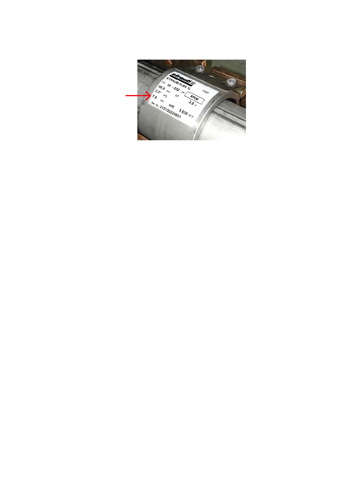 6. Tighten the bolts to the torque indicated on the pipe joint.