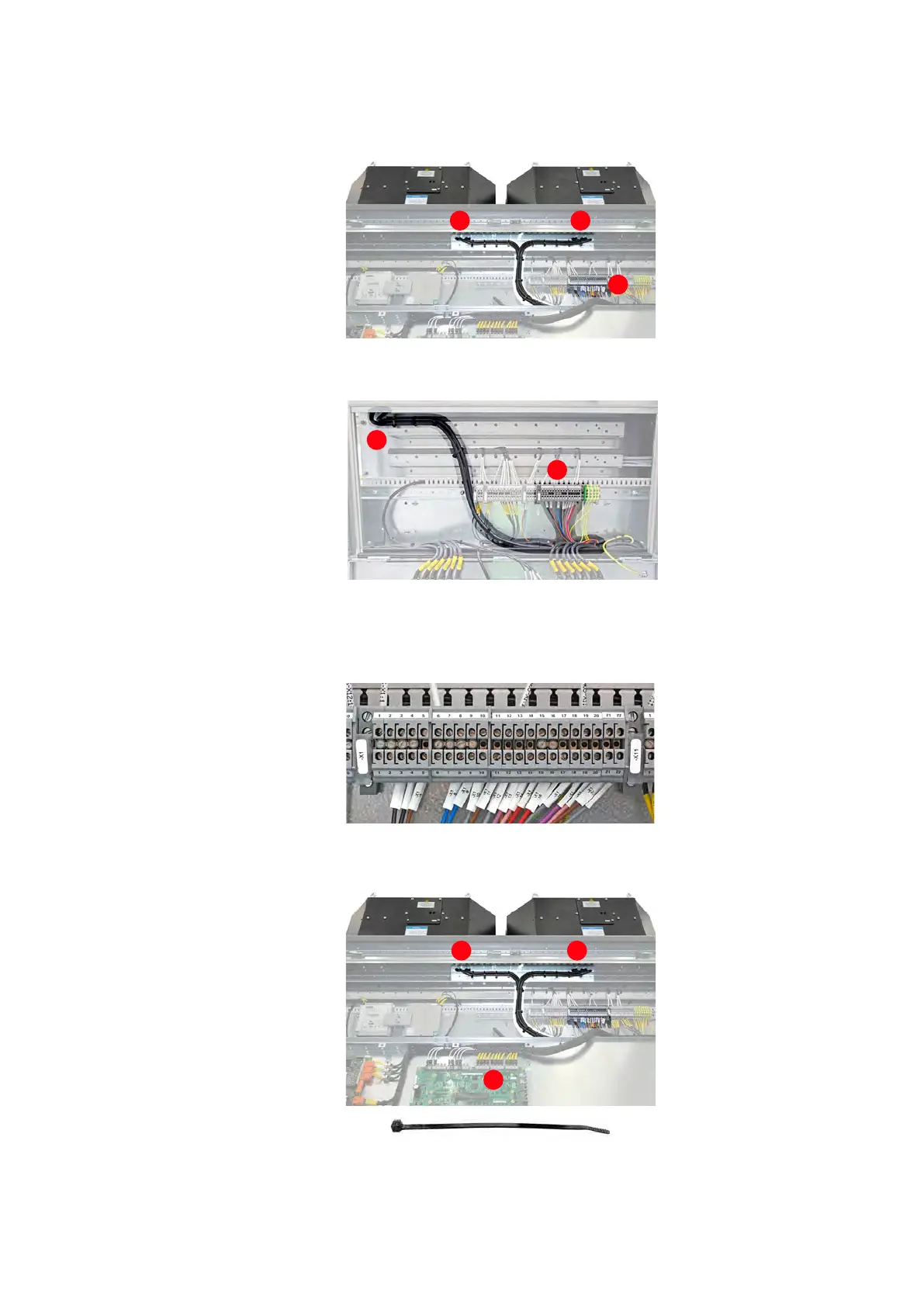 10. In the upper part of the cable duct (1), fasten the cables to the
