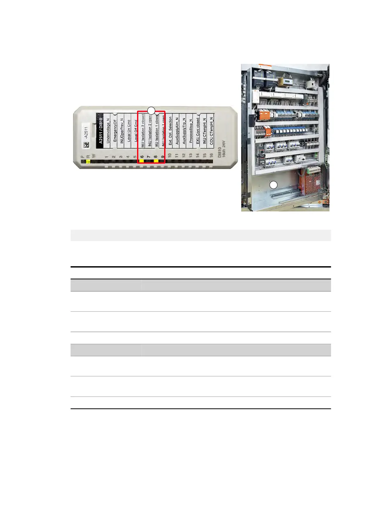 The LEDs of input module A2511 inside COU1 indicate whether the busbar