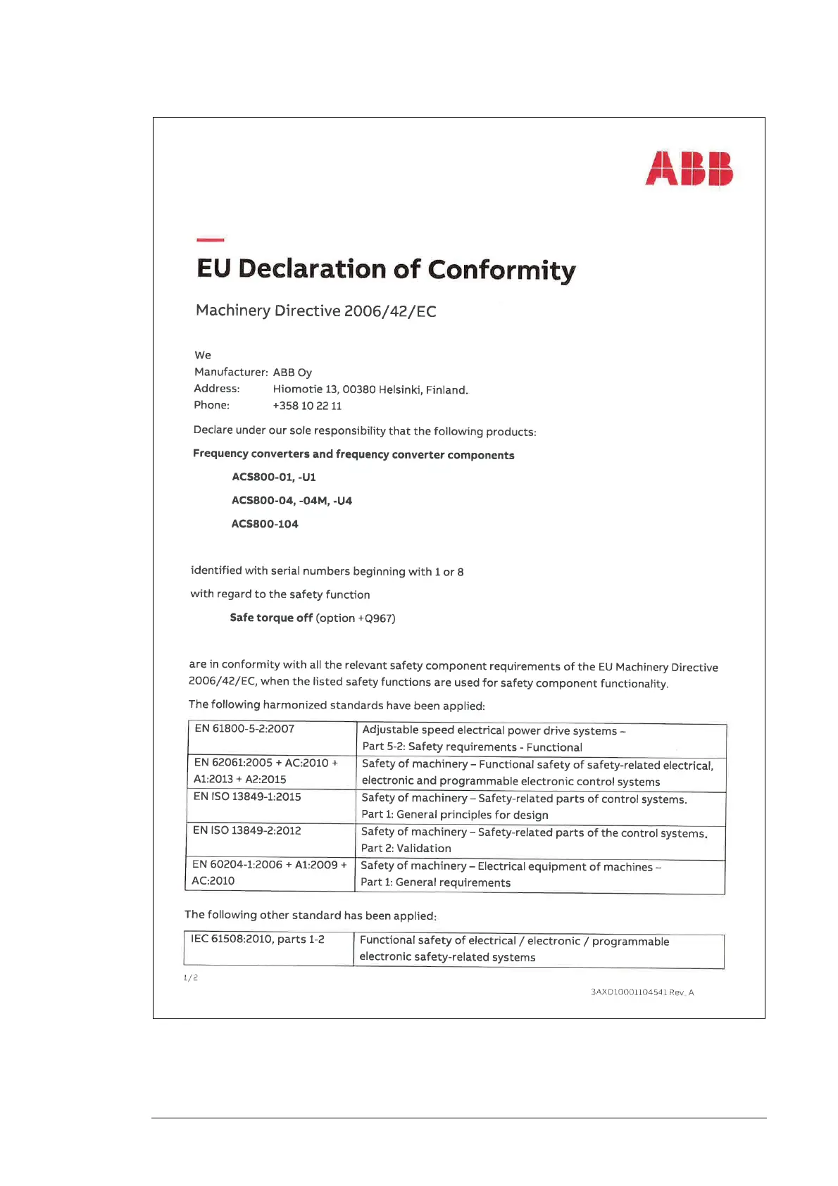 Other manuals for ABB ACS800-104