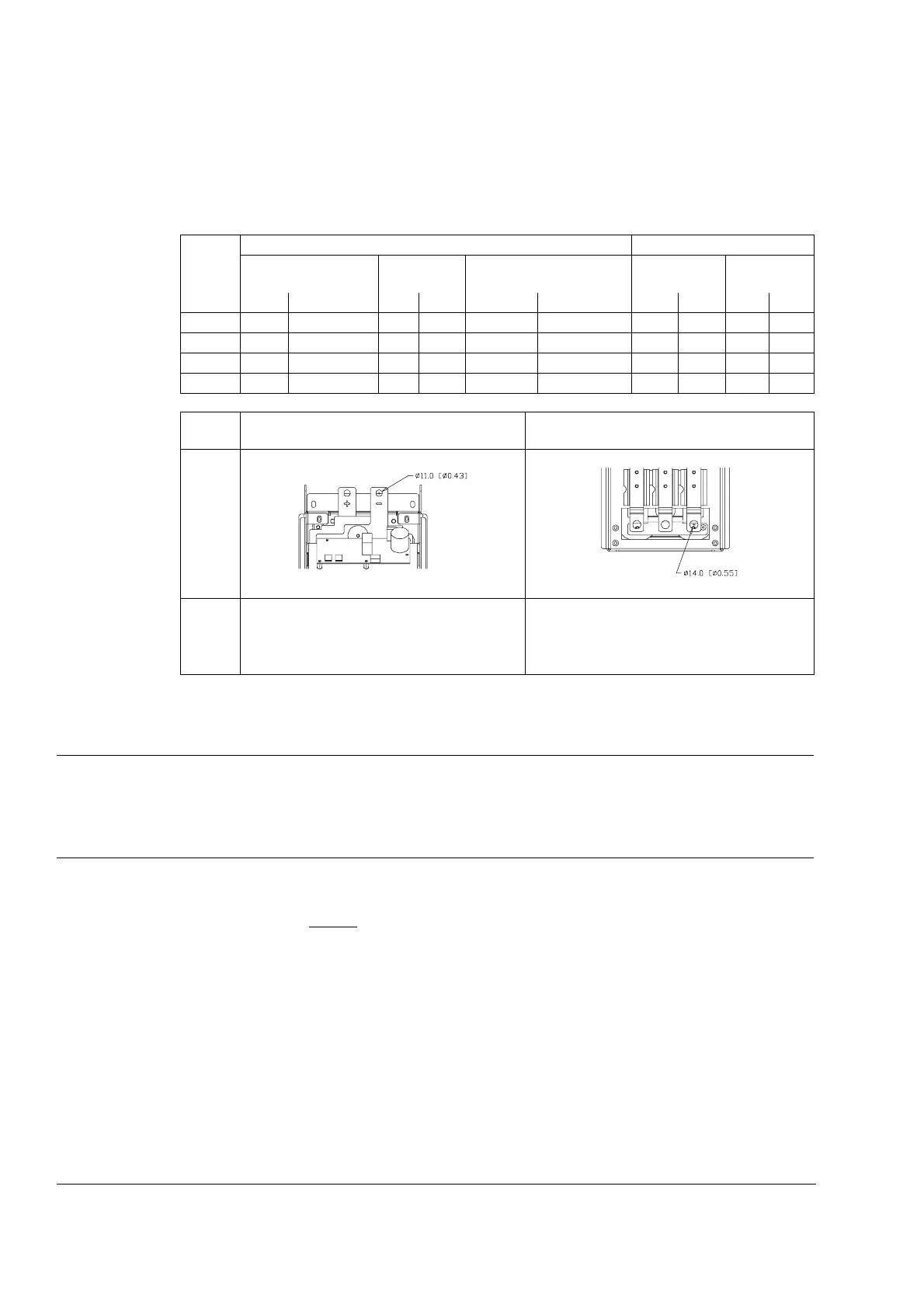 DC input and motor cable terminal sizes, accepted cable diameters and tightening