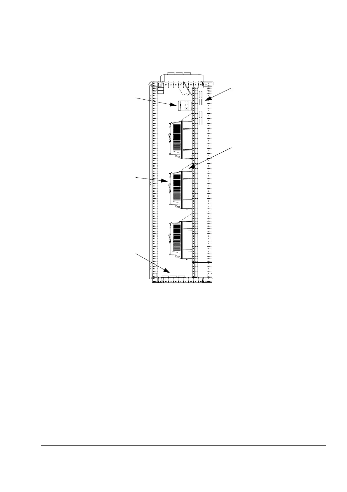 This drawing is a side view of three R3i modules in a 400 mm-wide cubicle.