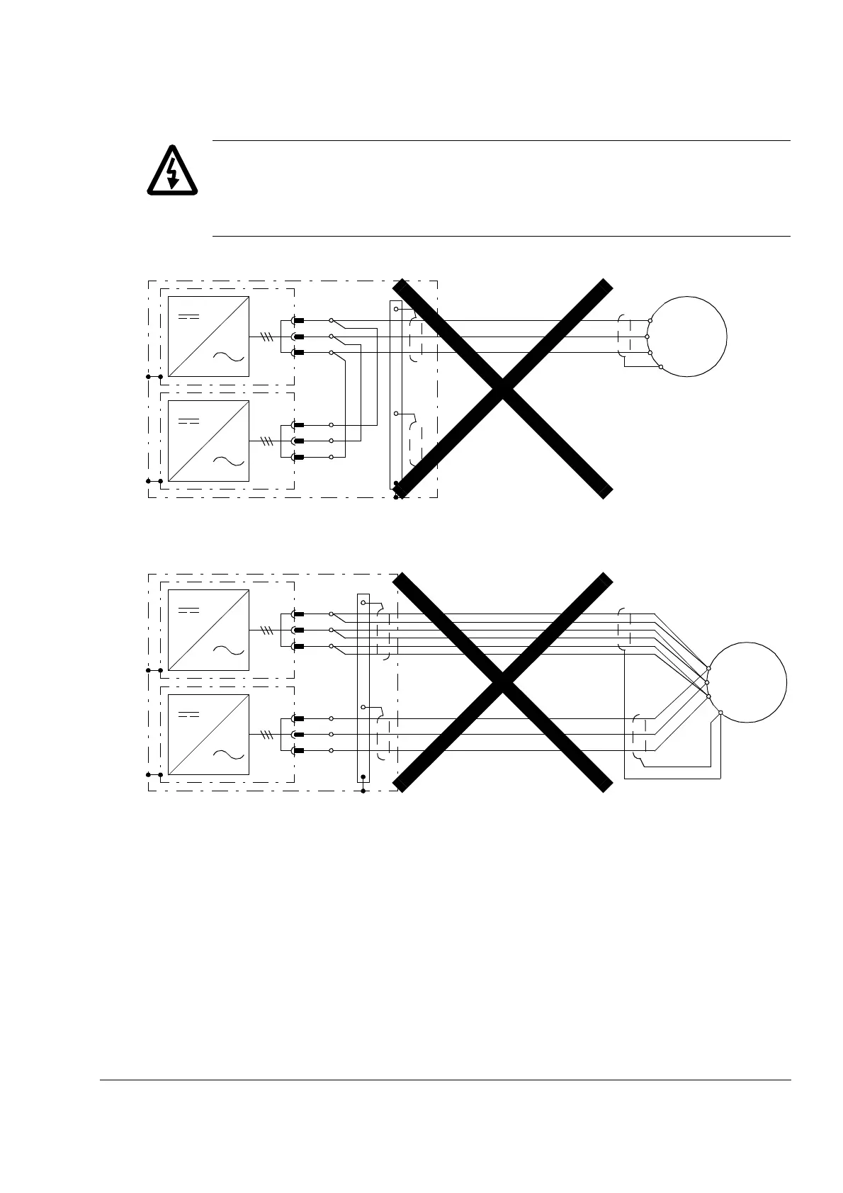 WARNING! The cabling from all inverter modules to the motor must be physically