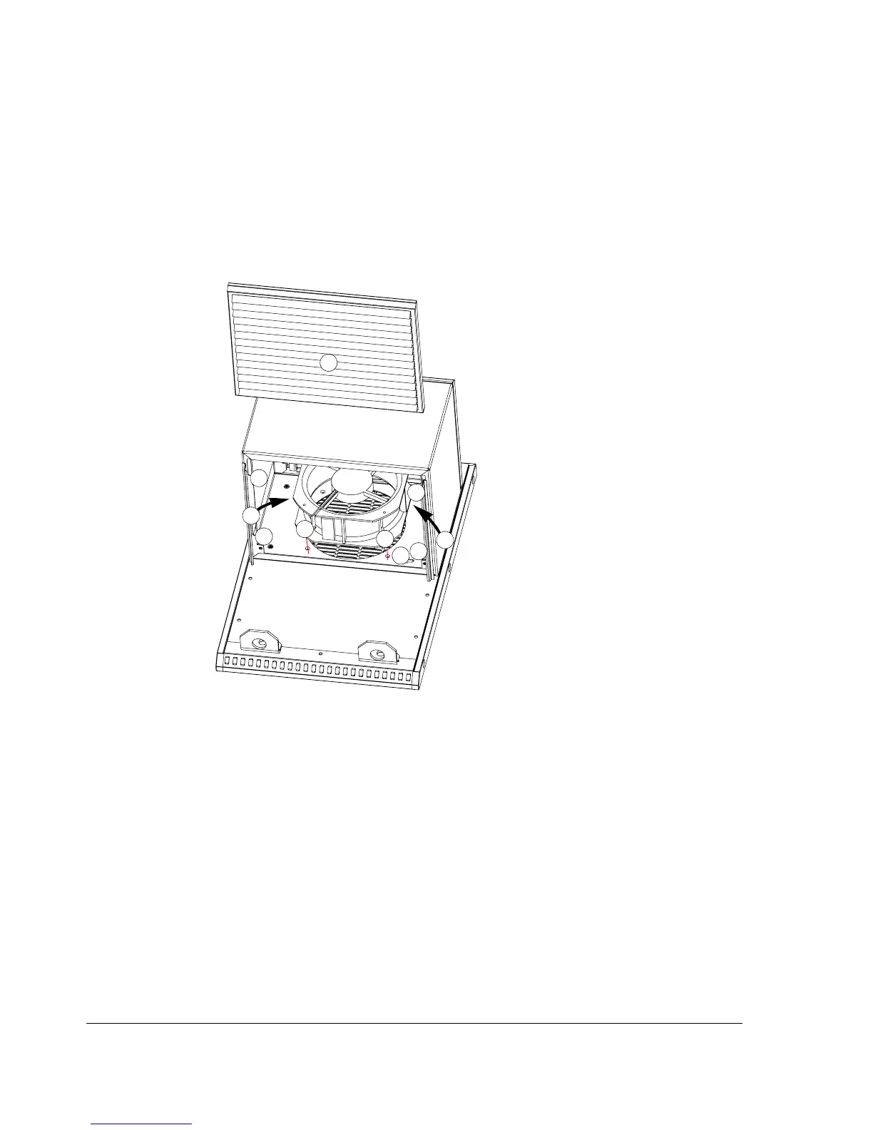 1. Remove the front grating of the fan cubicle by lifting it upwards.