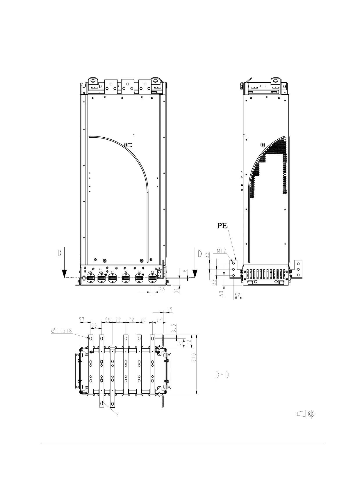 ABB ACS800 - Frame Size R7 Pedestal Busbars on the Long Side (MM)