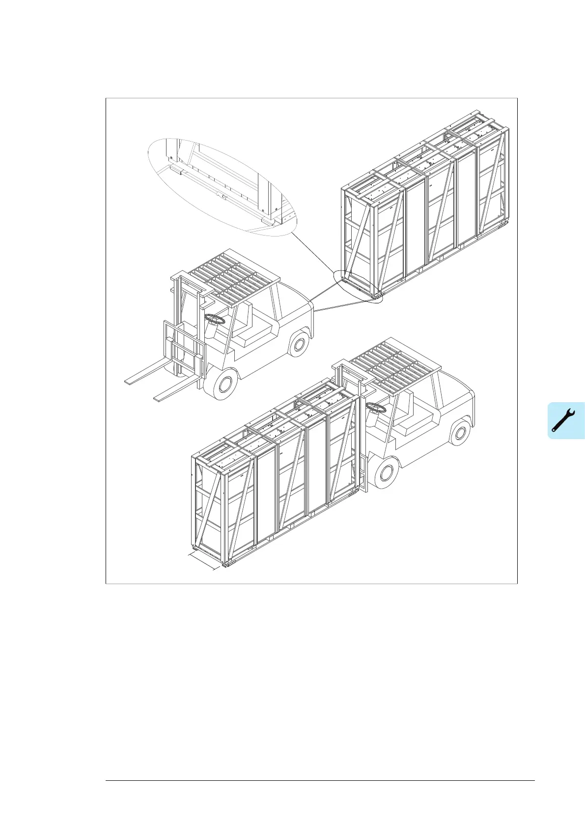 3. Remove the clamps with which the drive cabinet is mounted onto the transport pallet