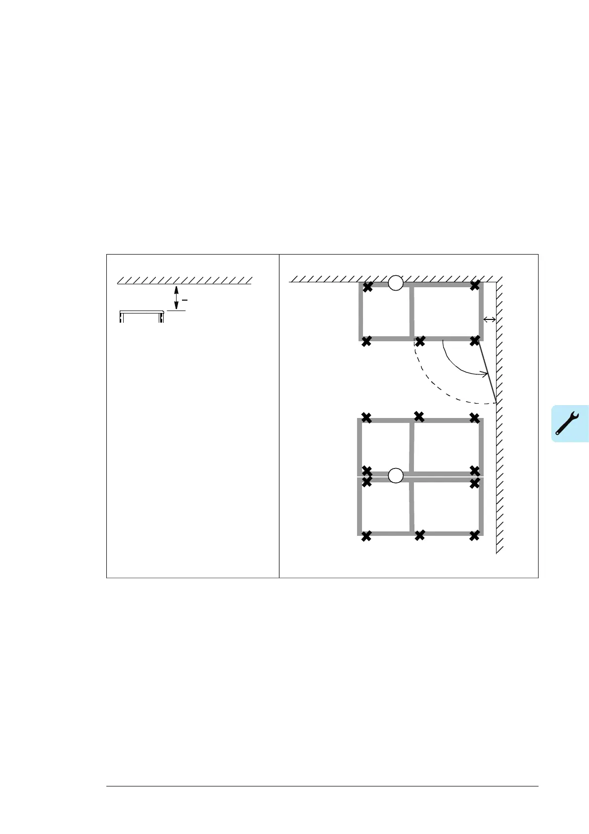 • Leave 250 mm (9.85”) of free space above the cabinet for maintenance, and to allow
