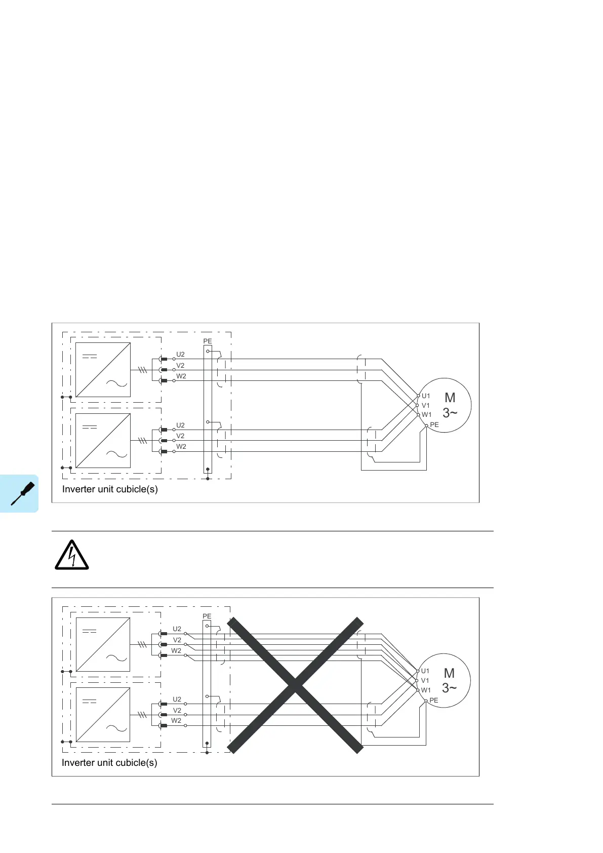 All parallel-connected inverter modules are to be cabled separately to the motor. 360°