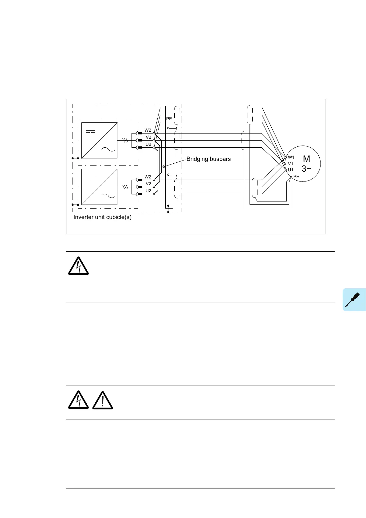 are connected by bridging busbars. The bridging balances the motor current between the