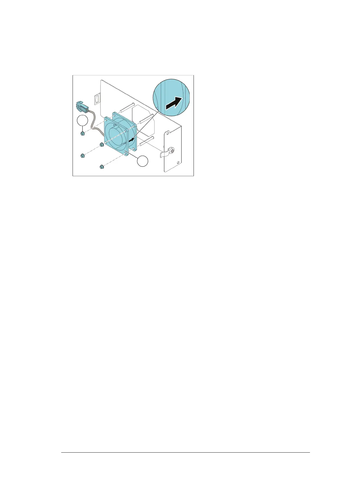 8. Put the fan onto the threaded studs on the fan holder with the airflow direction arrow