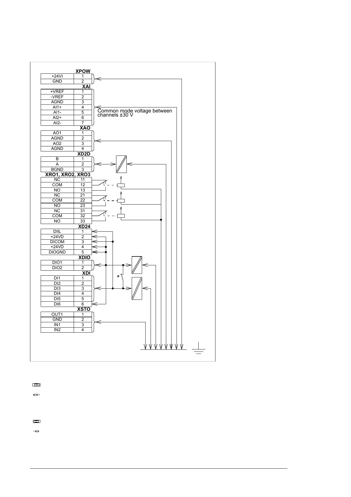 Ground of digital inputs DI1…DI5 and DIIL (DICOM) is isolated from DIO signal ground (DIOGND).