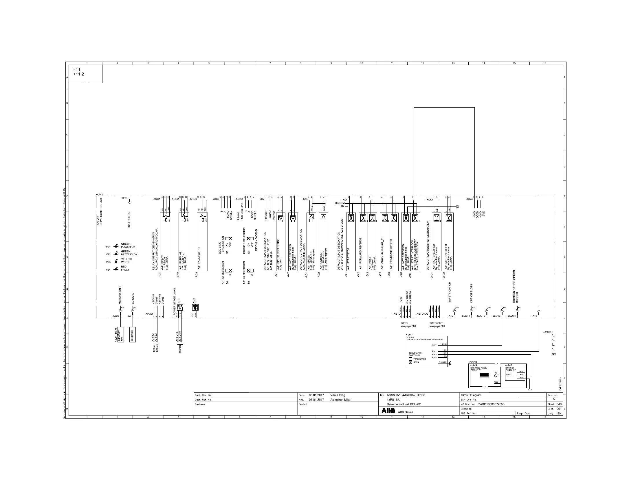 Frame R8i (with DC switch/disconnector) Sheet 040 (Control unit)
