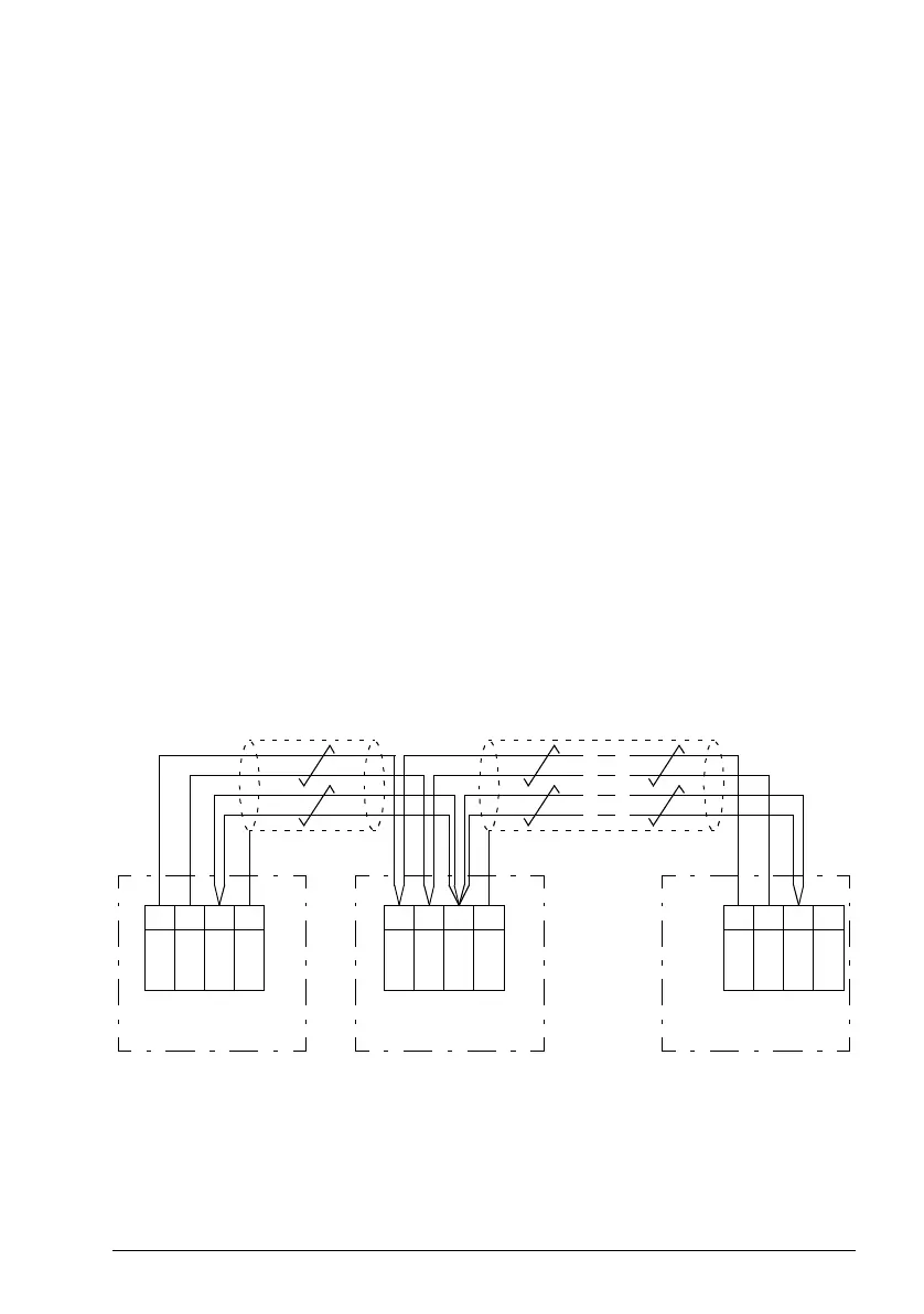 • shielded twisted-pair cable between the XD2D terminals of the drives*, or