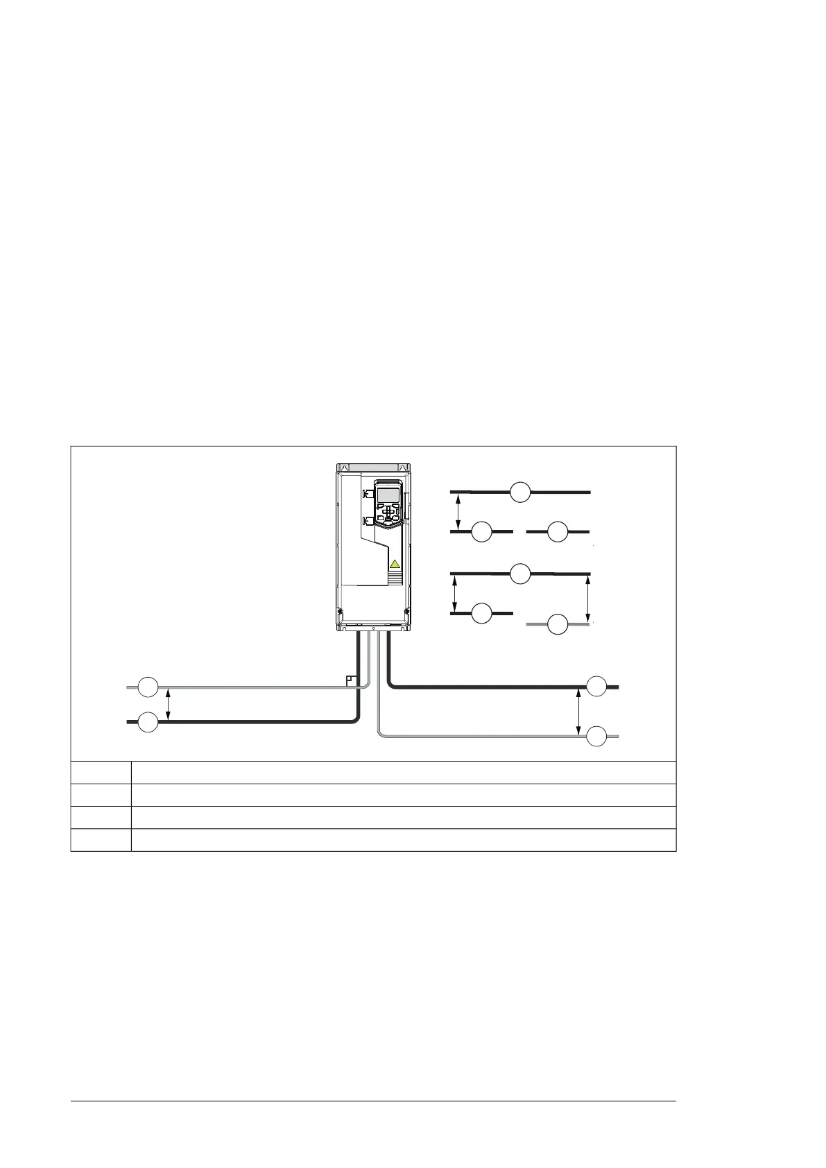 • Avoid long parallel runs of motor cables with other cables in order to decrease