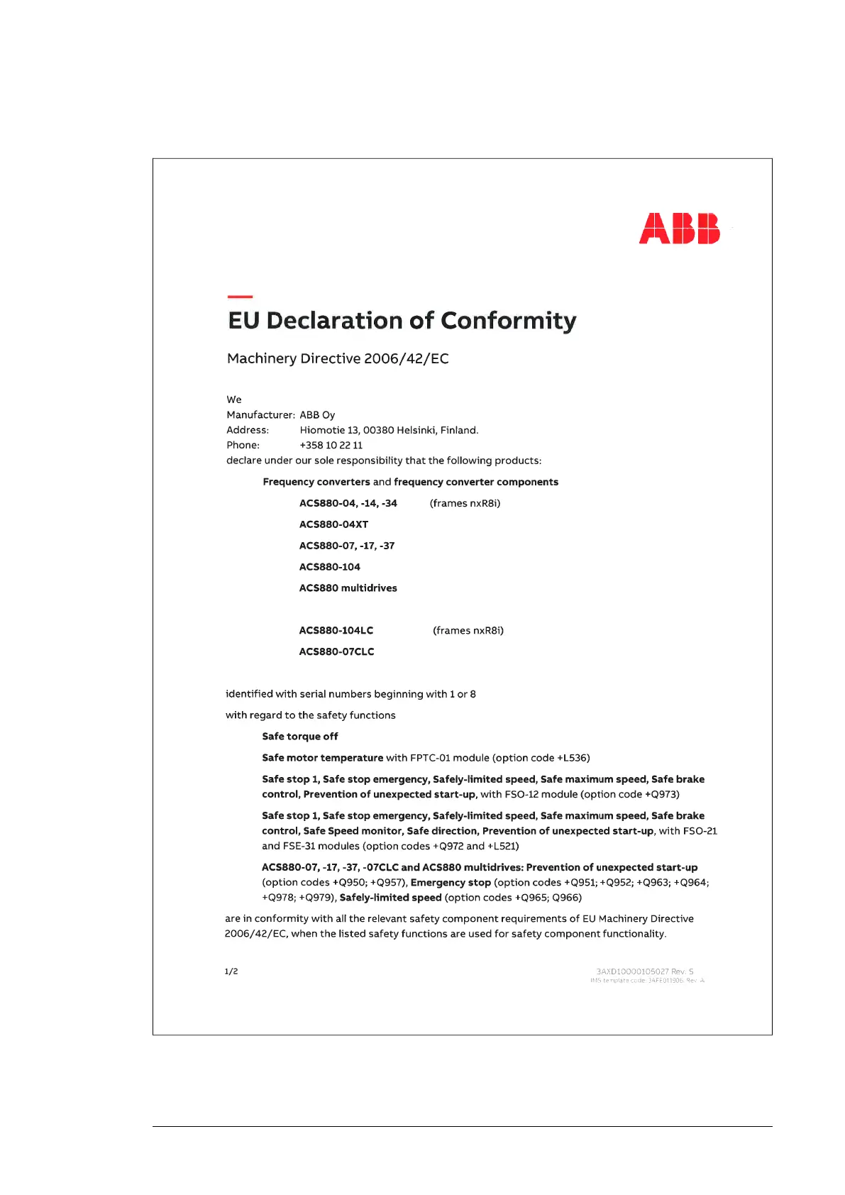 Safe stop emergency, Safely-limited speed, Safe maximum speed, Safe brake