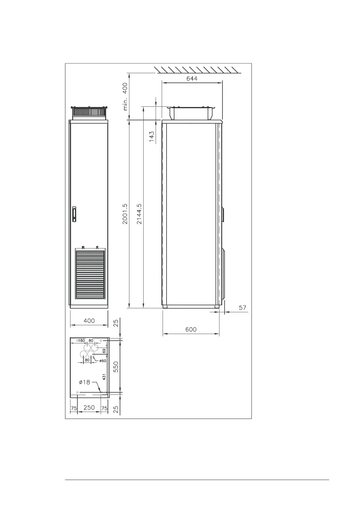 Dimension drawing, R8i (without +C128 or +H353), bottom cable exit