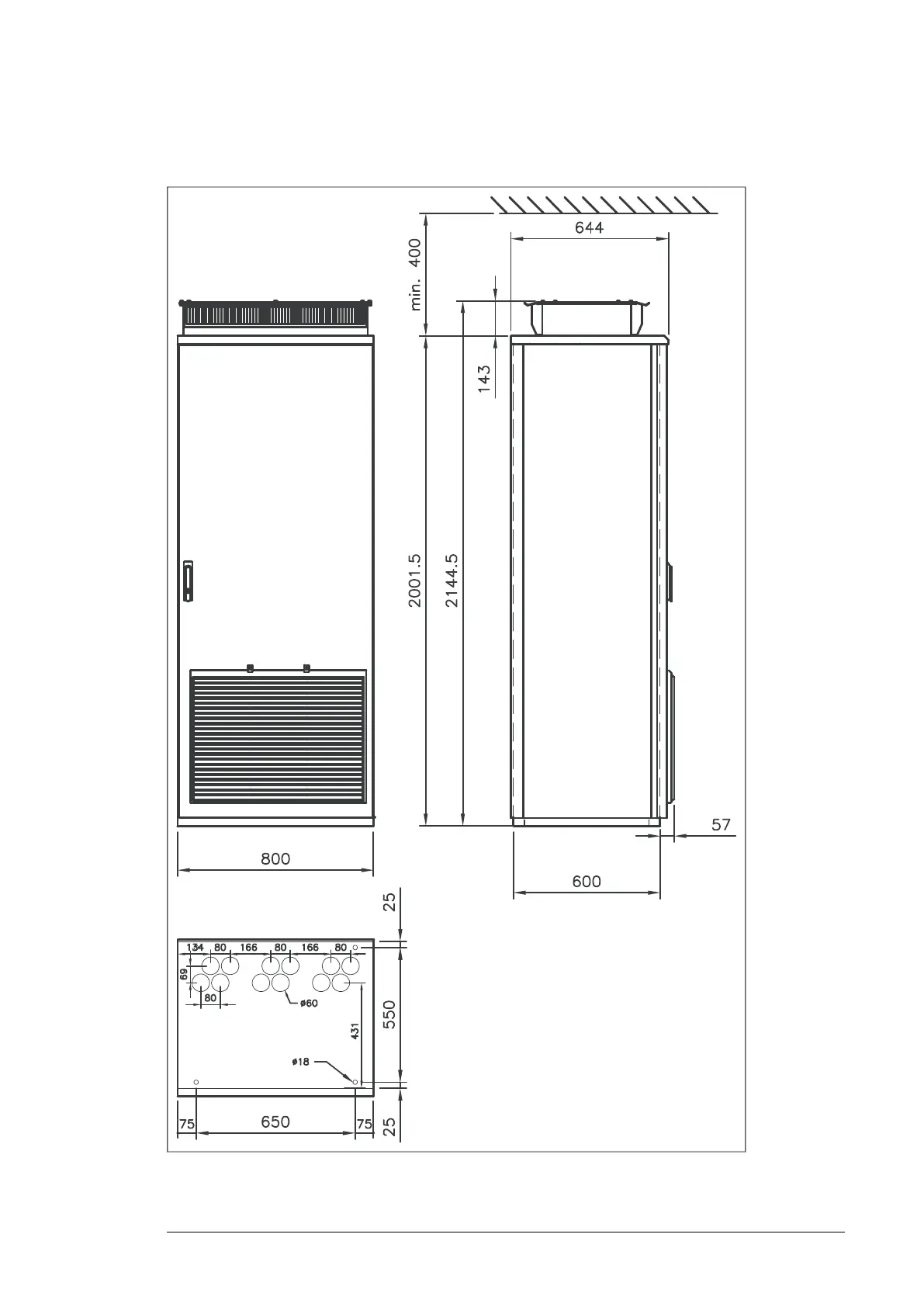 Dimension drawing, 3×R8i (without +C128 or +H353), bottom cable