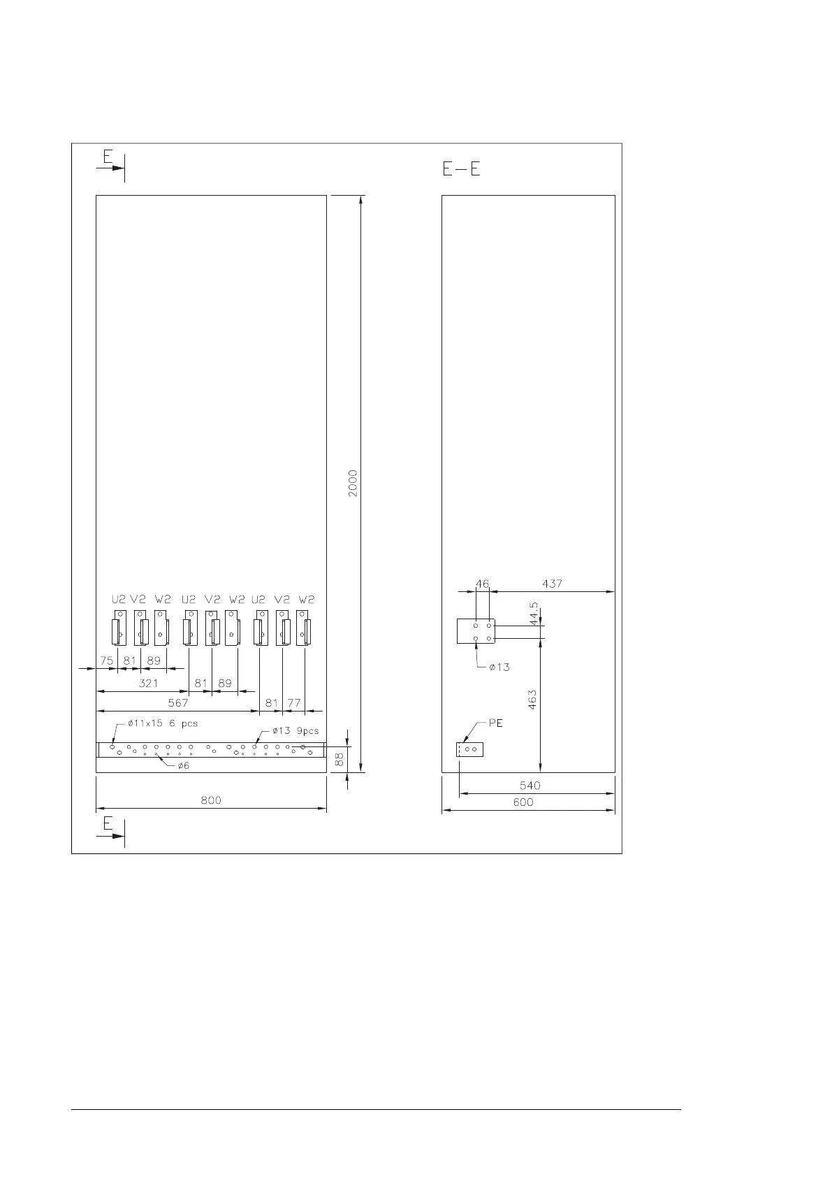 Inverter module cubicle with three R8i modules, bottom cable exit