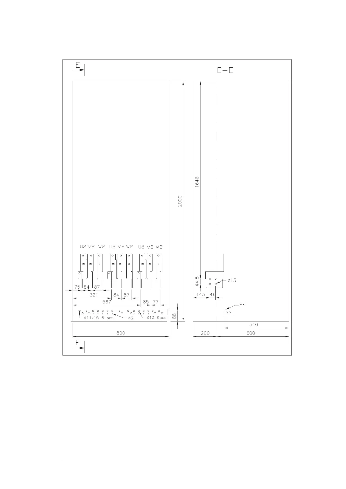 Sine filter (+E206) cubicle, 400 mm, bottom cable exit