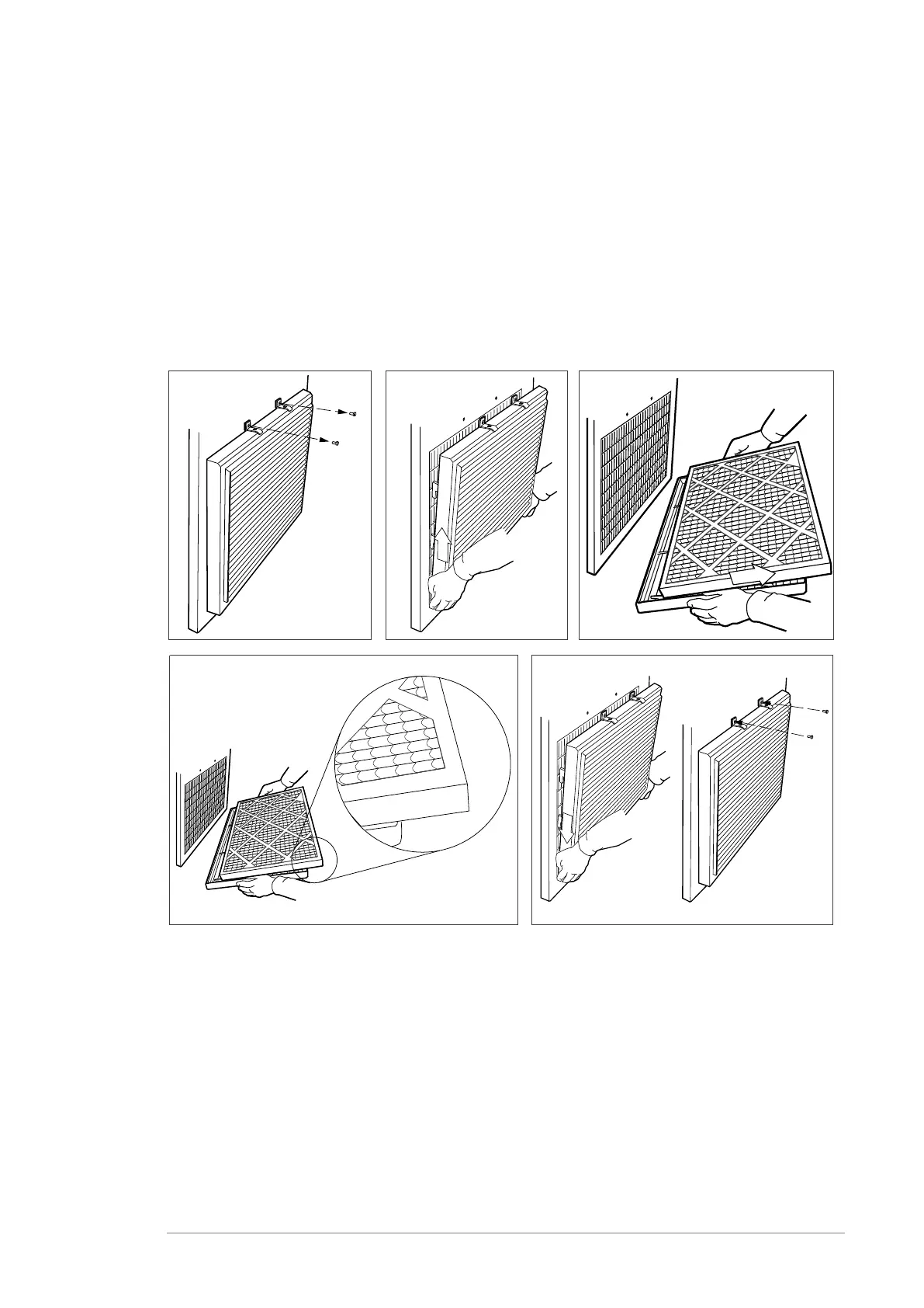 1. Remove the front and back gratings of the fan cubicle by lifting them upwards.