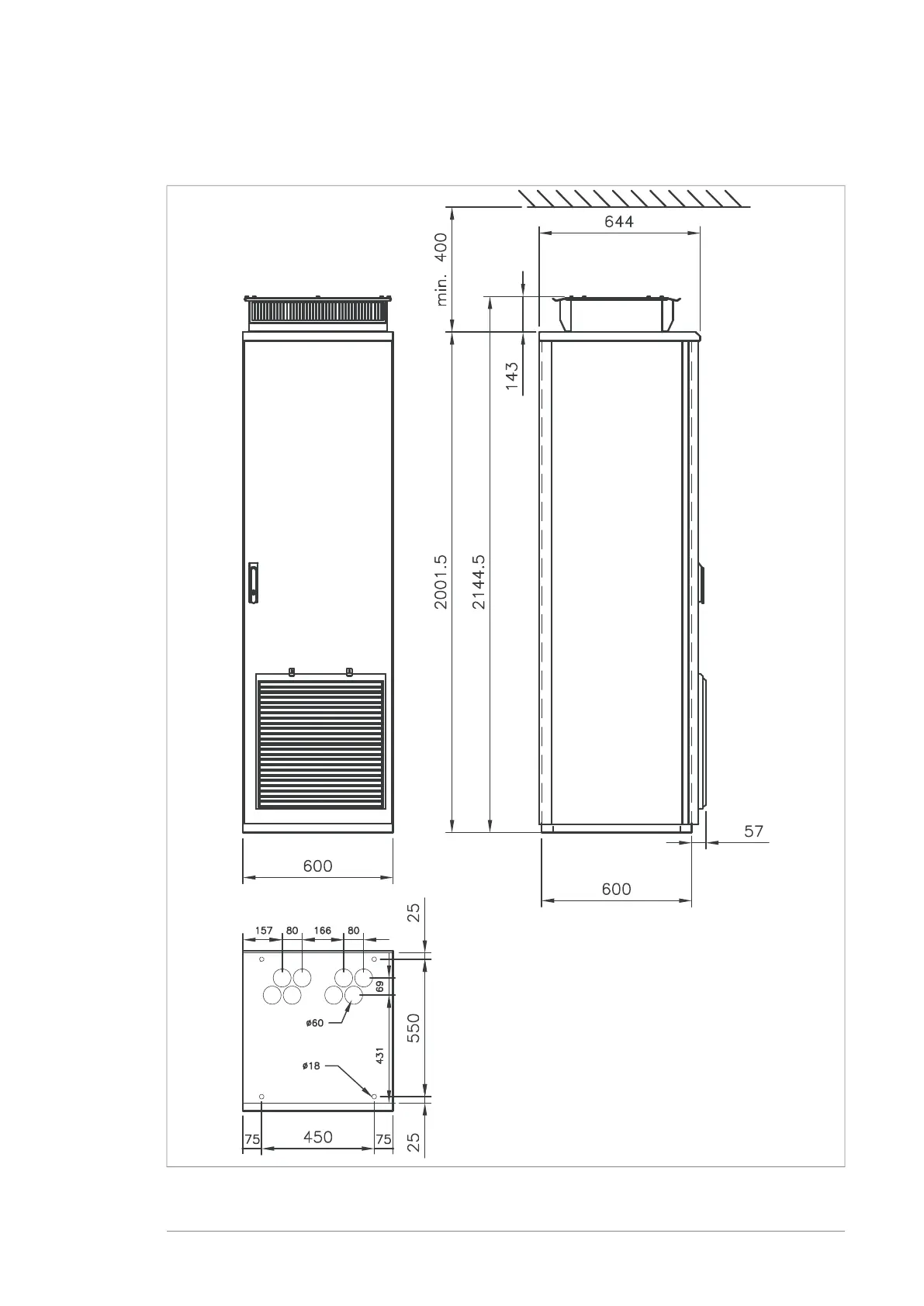 Dimension drawing 2×R8i (without +C128 or +H353), bottom cable