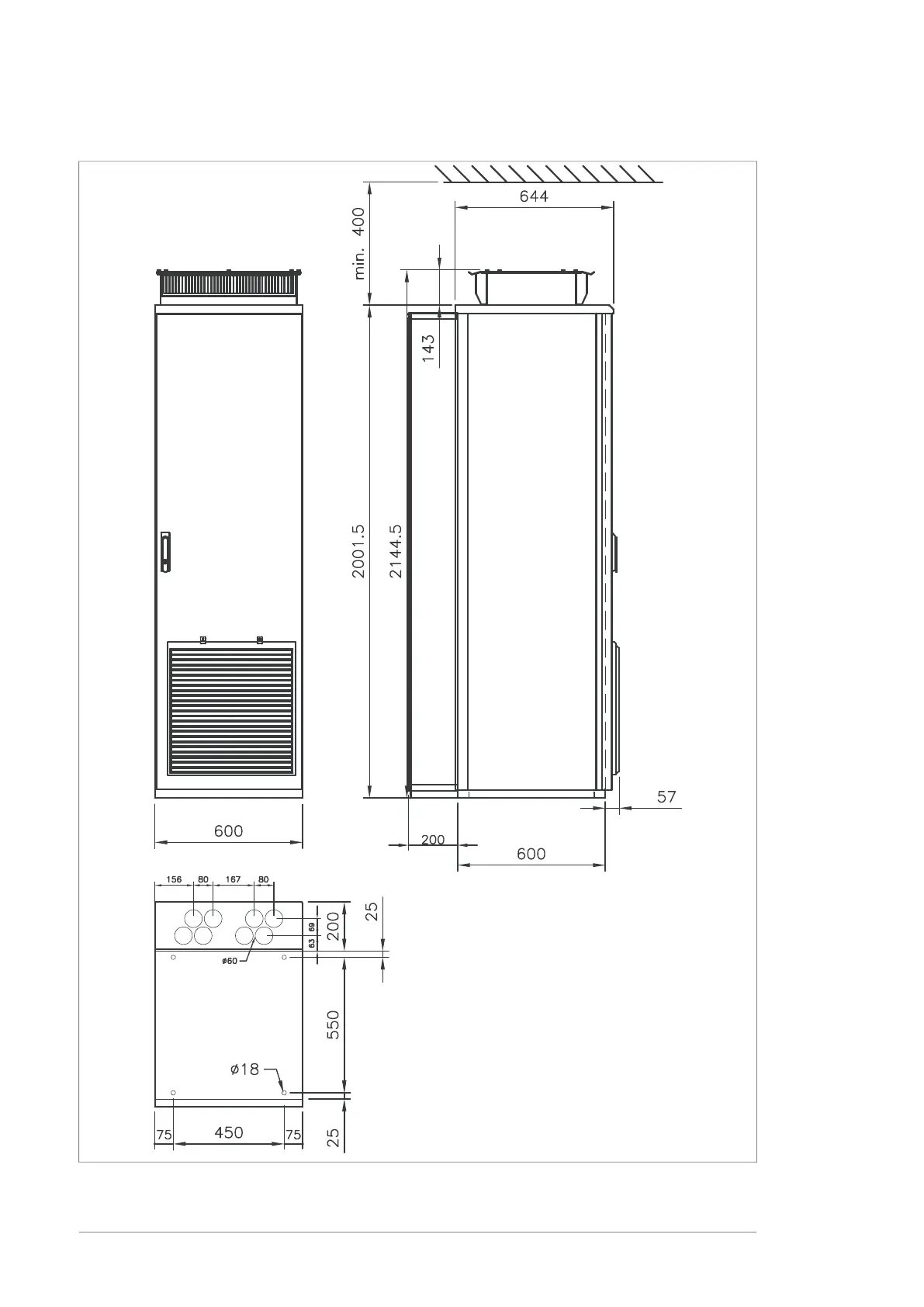 Dimension drawing 2×R8i (without +C128 or +H353), top cable exit